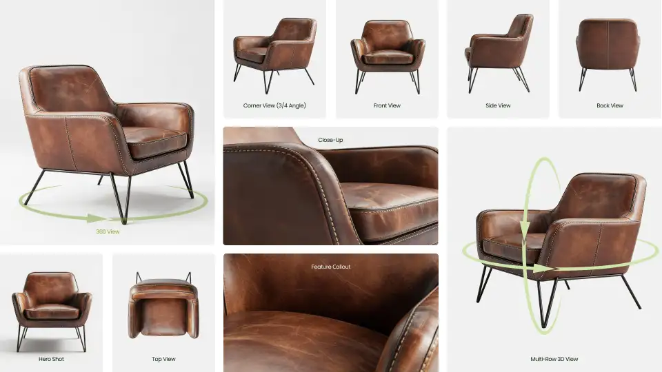 A few flat photos usually aren’t enough to give customers enough confidence to buy, especially for products where details matter, like furniture, home goods, electronics, or luxury items. Shoppers want to see texture, scale, and every angle before they feel comfortable spending their money.