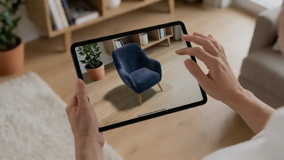 AR eliminates that by letting customers place true-to-scale digital products directly into their environment. It lets shoppers use their phone camera to drop a digital version of a product right into their own room. Instead of trying to imagine if a new rug will clash with the floor or if a pair of glasses fits their face, they just… see it.